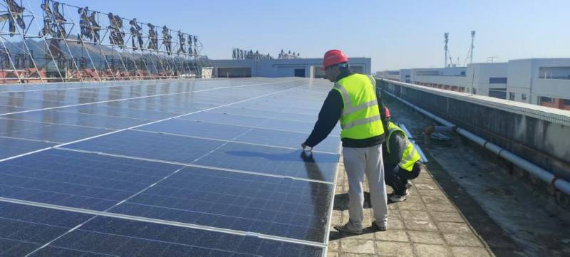 在“屋頂光伏”項(xiàng)目現(xiàn)場,項(xiàng)目團(tuán)隊(duì)放假不放工,春節(jié)期間堅守崗位,確保工程建設(shè)不停工,春節(jié)期間共新進(jìn)場11處。